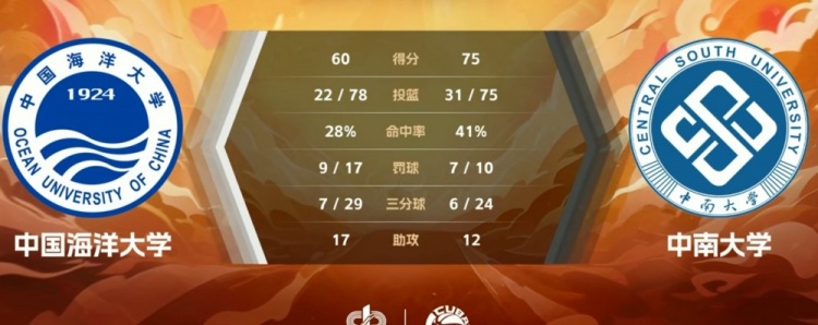 末节争夺,双方围绕10分的分差展开拉锯战,田媛媛再送助攻,王钊琦和张雨桐联手拿分带队追赶,中南大学加强防守保持领先,张紫君补篮得手继续扩大优势,中国海大苦苦追赶无果。最终,中南大学75-60力克中国海洋大学。